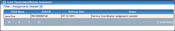 This page allows you to view and filter a list of transferred child records that currently need assignment.
