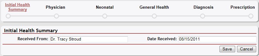 This page allows you to work with health information for a child.