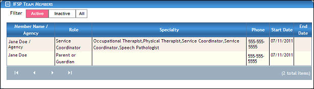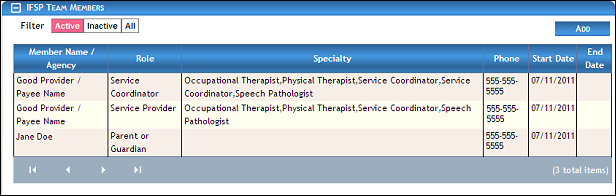 The IFSP Team Members page is available to the following user role(s) within the Georgia Babies Can't Wait Child Care Management application: