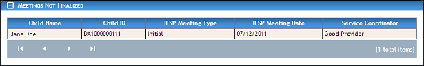 The Meetings Not Finalized page is available to the following user role(s) within the Georgia Babies Can't Wait Child Care Management application: