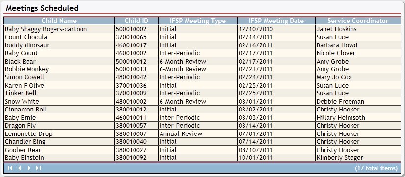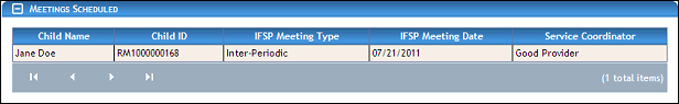 The Meetings Scheduled page is available to the following user role(s) within the Georgia Babies Can't Wait Child Care Management application:
