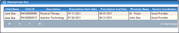 The Prescriptions Due page is available to the following user role(s) within the Georgia Babies Can't Wait Child Care Management application: