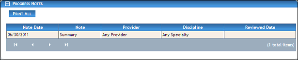 Progress Notes page (default view)