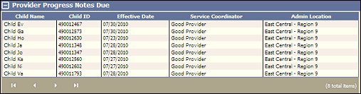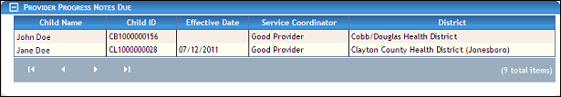 The Progress Notes Due page is available to the following user role(s) within the Georgia Babies Can't Wait Child Care Management application: