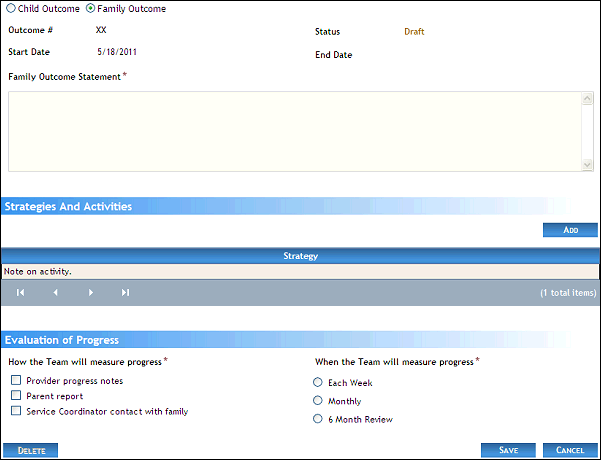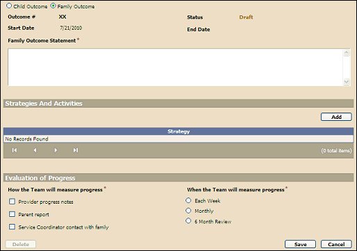 Use this tutorial to add a family outcome for IFSP meetings on the IFSP Meetings page.
