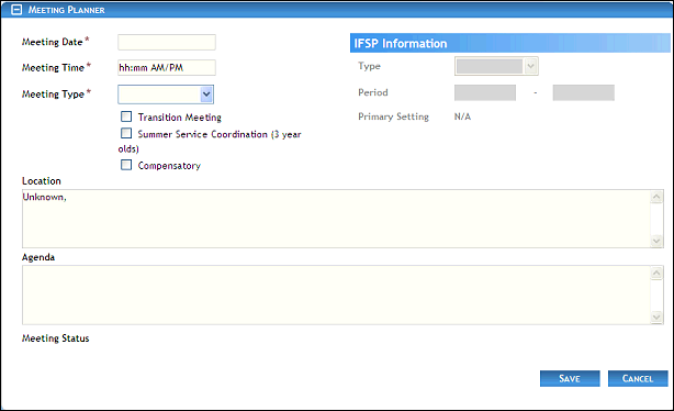 IFSP Meetings page (add view)