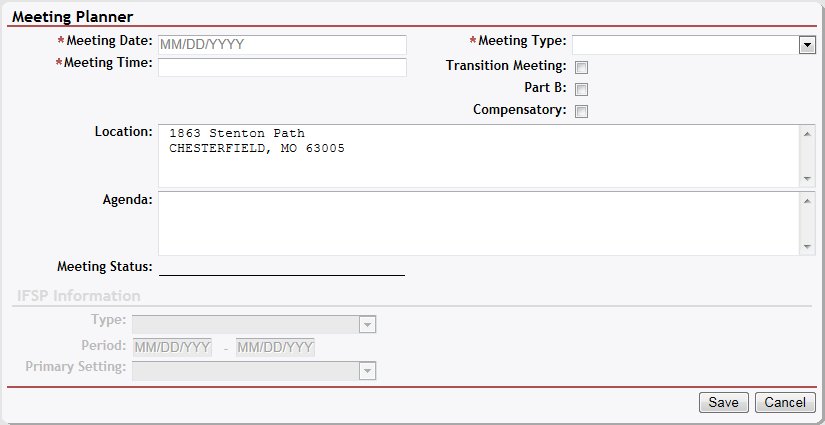 Click the Save button. The page refreshes and displays the updated information in the IFSP Meetings table.