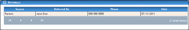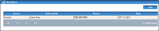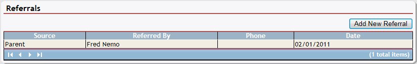 Click the Save button. The page refreshes and displays the new information in the Referrals table.