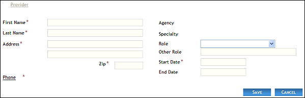 NOTE: Asterisks (*) indicate which fields are required on the page. If required information is missing, an error message displays at the top of the page after saving the data. |