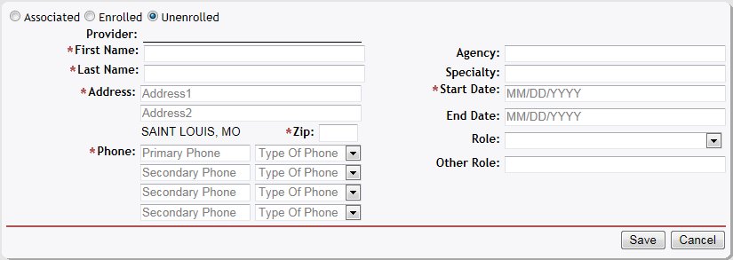 Click Add. The page refreshes and displays all family members, providers, physicians, and coordinators currently associated with the child in a table.