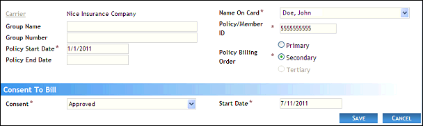 In Consent, select whether consent to bill has been given from the drop-down list.