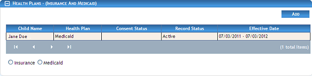Click the Add button. The page refreshes and displays the insurance type radio button group.