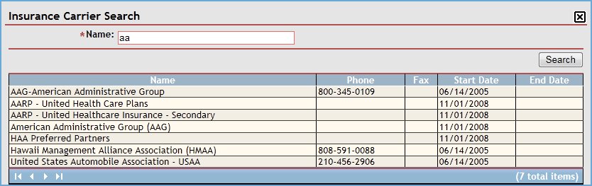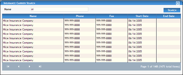 Click the Carrier link. The Insurance Carrier Search page displays when clicked.