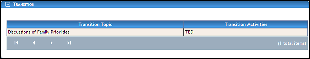 In Transition Activities, enter the activities that fulfill the transition topic.