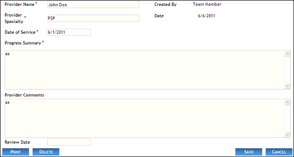 Click Delete. A confirmation message displays asking if you are sure you want to delete the progress note.