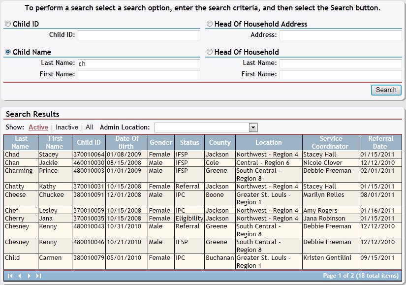 Use this tutorial to enter information such as a child ID, child name, head of household address, or head of household name to search for a child on the Child Search page.