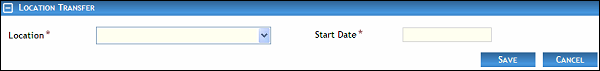 Click the Location Transfer button. The page refreshes and displays a Location Transfer section with additional fields for entry.