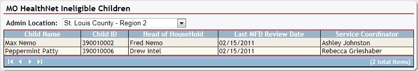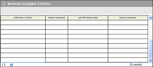 View the list of child records in the Medicaid Ineligible Children table.
