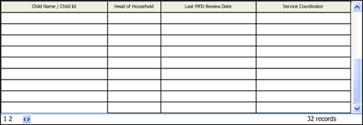 NOTE: If no results are found, the table displays a single row containing the text: "No Records Found". For more information about tables, see the Tables topic. You can double-click on a child record in the table to display the Monthly Fee Determination page. For more information, see the Tutorial: View a List of Monthly Fee Determinations for a Child tutorial. |
