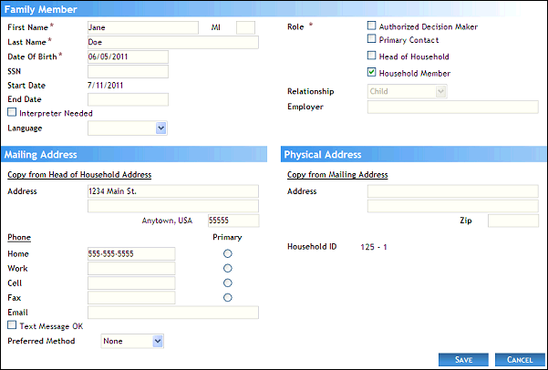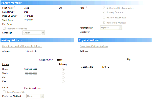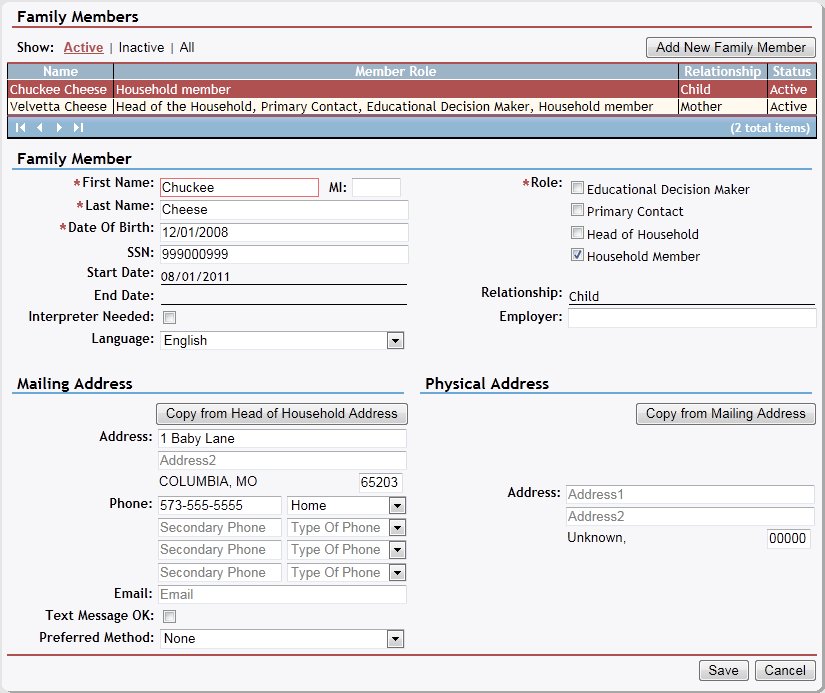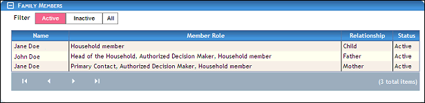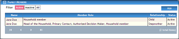 Double-click on a family member in the table. The page refreshes and displays detailed information below the table.