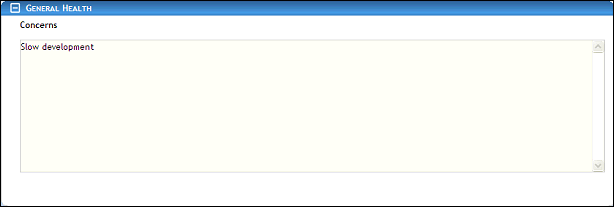 Parent/Caregiver Concern or Observations displays any additional comments or concerns from the parent/caregiver regarding the child.