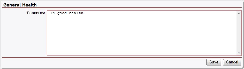 Click the Health & Medical link. The page refreshes and displays additional sections and fields for entry.