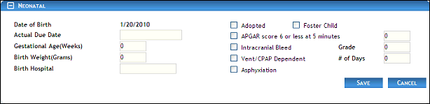 Click the [+] to expand the Neonatal section. The section expands to display additional information.