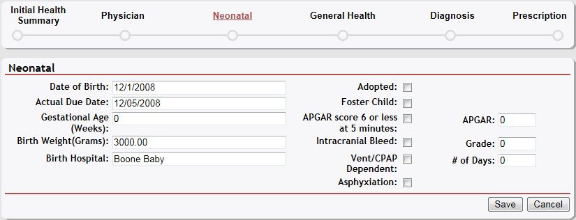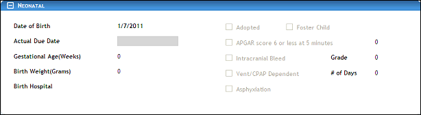 The Intracranial Bleed check box indicates that the child had an intracranial bleed at birth. Then, view the grade.