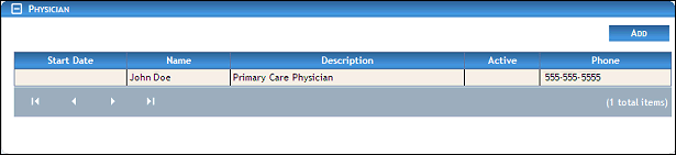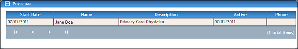 Click the [+] to expand the Physician section. The section expands to display additional information.