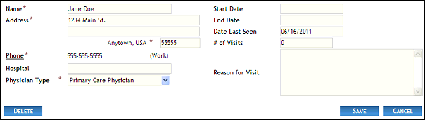 Physician Type displays the specific role assigned to the physician from the drop-down list.