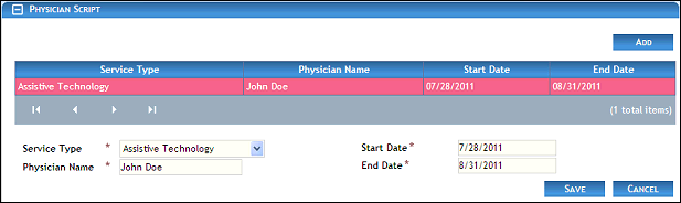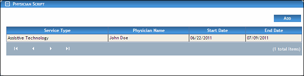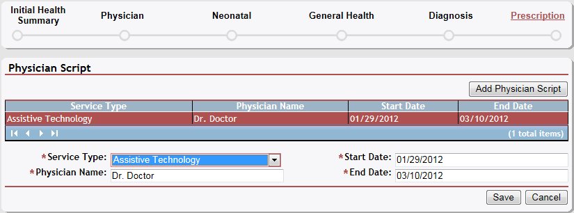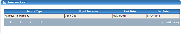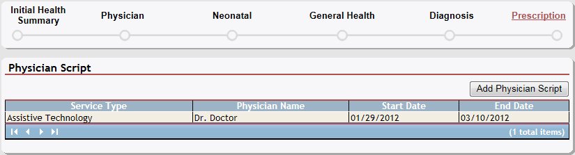 Double-click on a prescription in the Physician Script table. The page refreshes and displays detailed information below the table.
