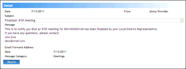 Click the Delete button to delete the message. The message will no longer display in the table.