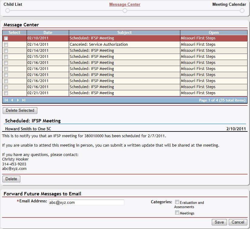 Message Category indicates whether the category is Evaluation and Assessments, Authorizations, or Meetings.