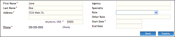 NOTE: Asterisks (*) indicate which fields are required on the page. If required information is missing, an error message displays at the top of the page after saving the data. |