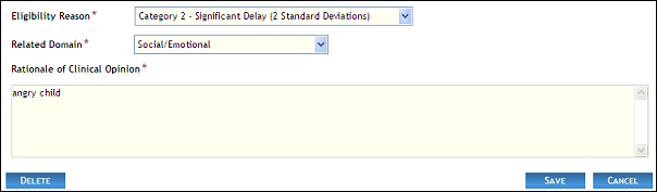If Category 2 - Significant Delay or Moderate Delay is selected as the Eligibility Reason, the following controls are available: