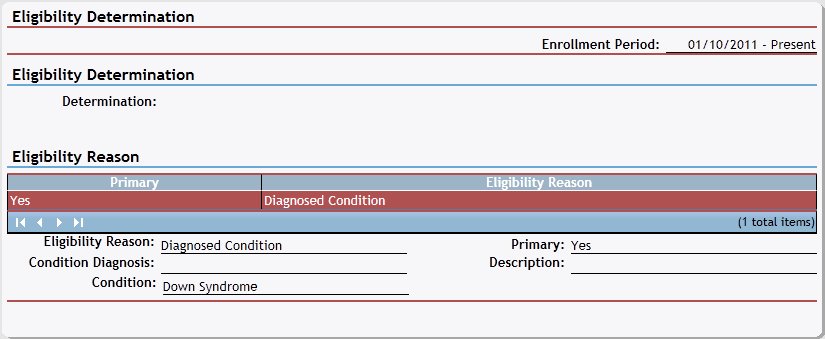 In Eligibility Reason, select the eligibility reason for the person's eligibility determination from the drop-down list.
