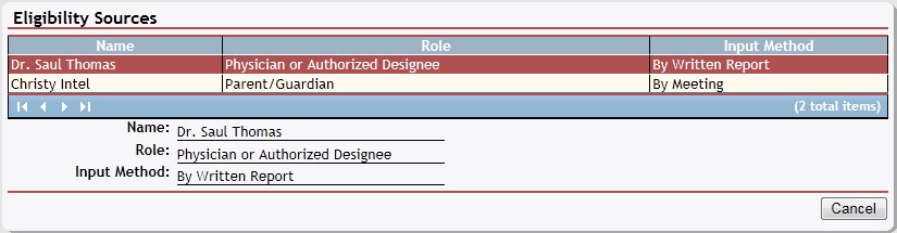 Double-click on an eligibility source in the table. The page refreshes and displays detailed information below the table.
