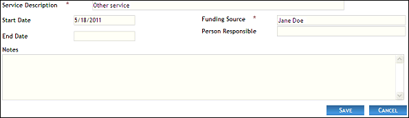 Click the Save button. The page refreshes and displays the new information in the Other Services table.
