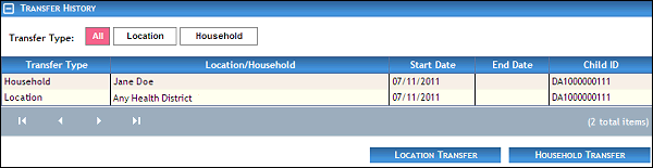 Transfer Type displays whether the transfer type is Location or Household.