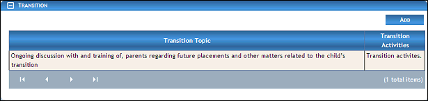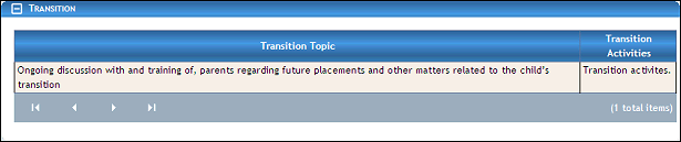 Double-click on a transition meeting in the IFSP Meetings table. The page refreshes and displays detailed information below the table.