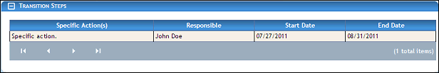 View the transition steps displayed in the Transition Steps section.