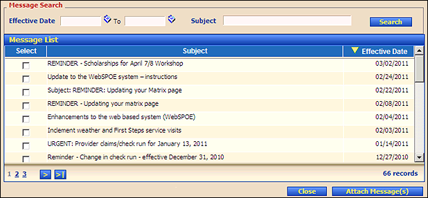 Click Attach Message(s). The Provider Communication - Message page displays.