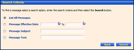 Select the Message Effective Date radio button and enter a date range to perform a search by effective date. For more information about entering dates, see the Calendar Controls topic.