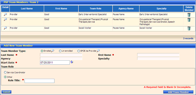 Team Role displays the specific role that the team member will play on the PSP Team.