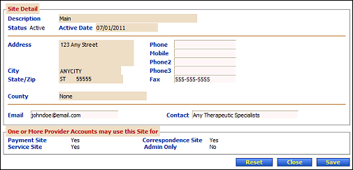 Payment Site indicates whether this site is currently designated as a payment site for a provider.