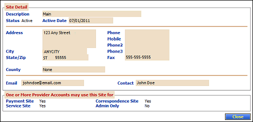 Service Site indicates whether this site is currently designated as a service site for a provider.